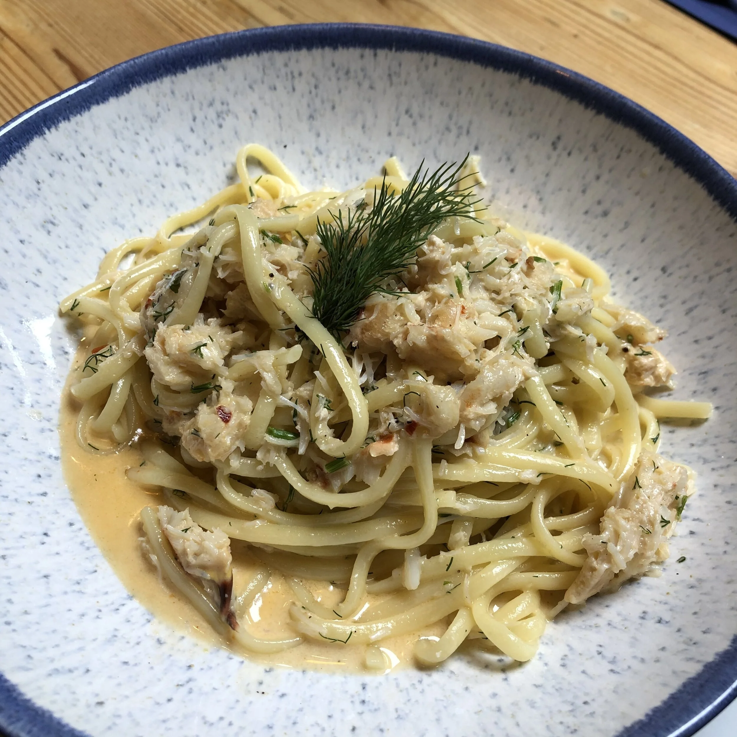 Matt’s crab linguini (£16) was faultless. The only minor grumble was that it could’ve been bigger. But the combination of Cornish white crab meat with dill, lemon, chilli, cream and white wine was sublime.